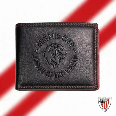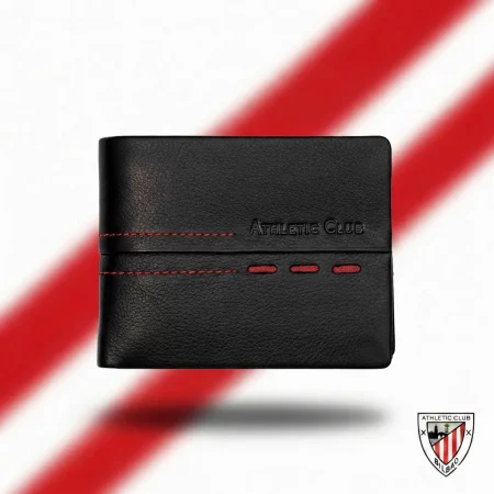 Las carteras disponibles en esta categoría están fabricadas en piel 100% y cuentan con diseños exclusivos como el Diseño AC, Diseño Costura, Diseño Franja roja, Diseño León, Diseño Letras Metálicas, Diseño Nombre y Escudo y Diseño Unique in The World. Algunos modelos incluyen monedero y protección RFID, como la Billetera Americana con monedero de Piel, Diseño AC, Athletic Club Bilbao.
