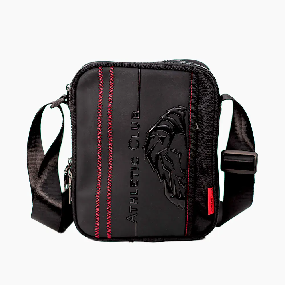 - Diseño Oficial: Bolso bandolera auténtico del Athletic Club Bilbao con elegante combinación de colores negro y detalles en rojo
