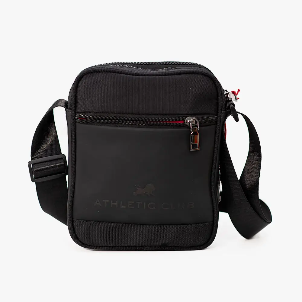 Bolso bandolera de la colección 337 del Athletic Club. Cuenta con un material resistente a la humedad de gran calidad. Tiene un compartimento central muy versátil y un bolsillo trasero y delantero con cremallera. La cinta de la bandolera es regulable.