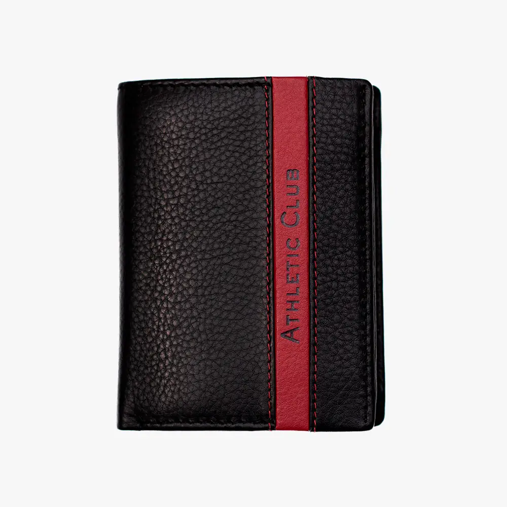 Descubre esta elegante cartera oficial del Athletic Club, fabricada en piel 100% vacuno de primera calidad. El exterior en negro con una franja roja decorativa refleja los colores tradicionales del equipo, mientras que el interior incluye múltiples compartimentos para tarjetas y documentos. Cuenta con tecnología RFID safe para proteger tus tarjetas bancarias contra lecturas no autorizadas.