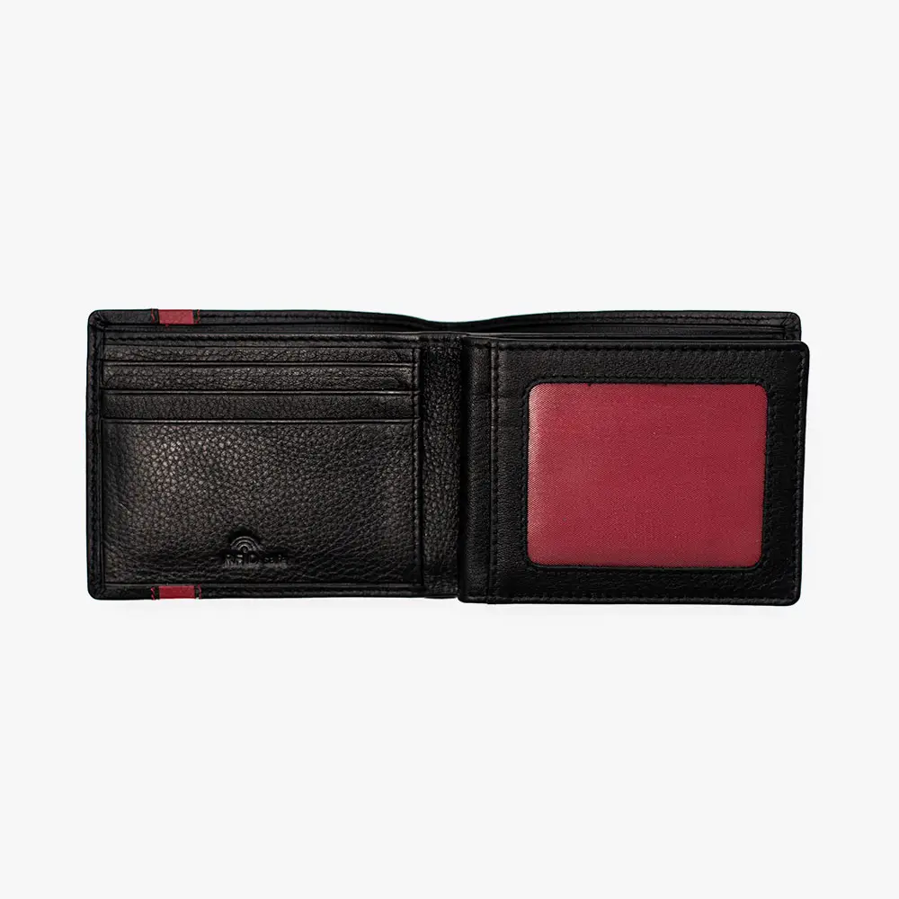 INTERIOR FUNCIONAL: Múltiples compartimentos para tarjetas y documentos con forro interior en color rojo distintivo