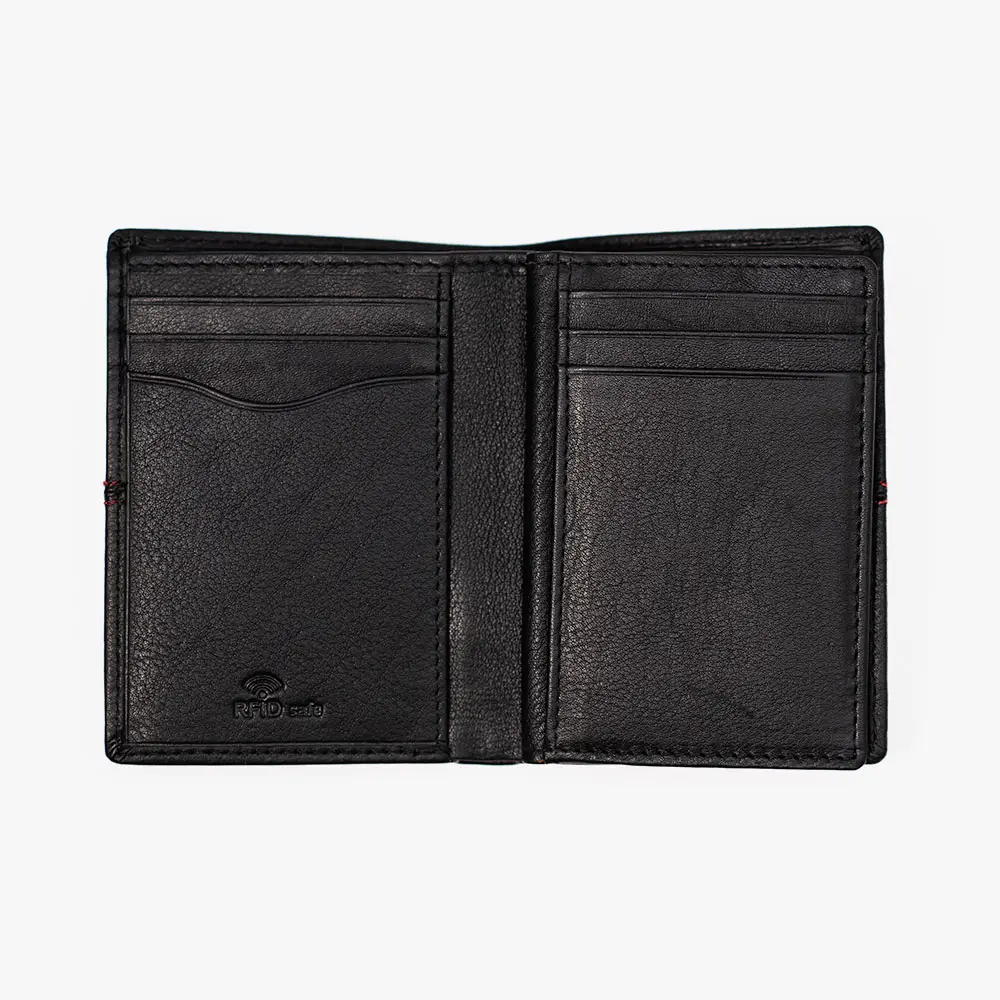 INTERIOR FUNCIONAL: Múltiples compartimentos para tarjetas y documentos con forro interior en color rojo distintivo