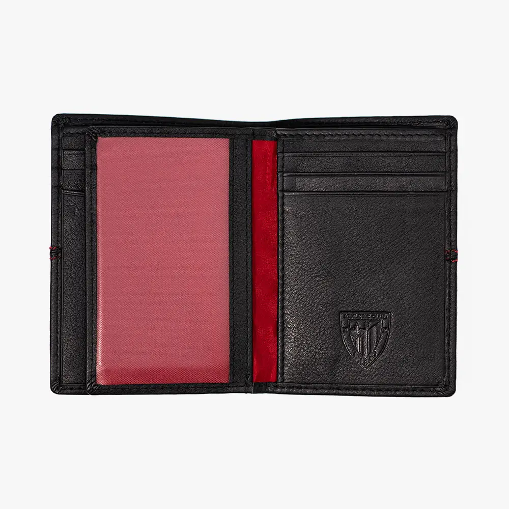 Descubre esta elegante cartera oficial del Athletic Club, fabricada en piel 100% vacuno de primera calidad. El exterior en negro con una franja roja decorativa refleja los colores tradicionales del equipo, mientras que el interior incluye múltiples compartimentos para tarjetas y documentos. Cuenta con tecnología RFID safe para proteger tus tarjetas bancarias contra lecturas no autorizadas.