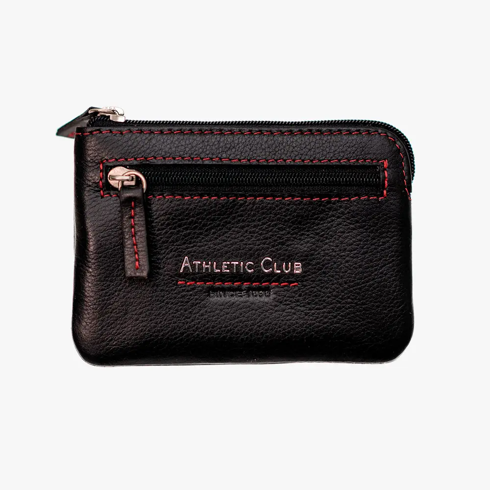 Descubre este elegante monedero oficial del Athletic Club, fabricada en piel 100% vacuno de primera calidad. El exterior en negro con costuras rojas decorativas refleja los colores tradicionales del equipo. Cuenta con tecnología RFID safe para proteger tus tarjetas bancarias contra lecturas no autorizadas.