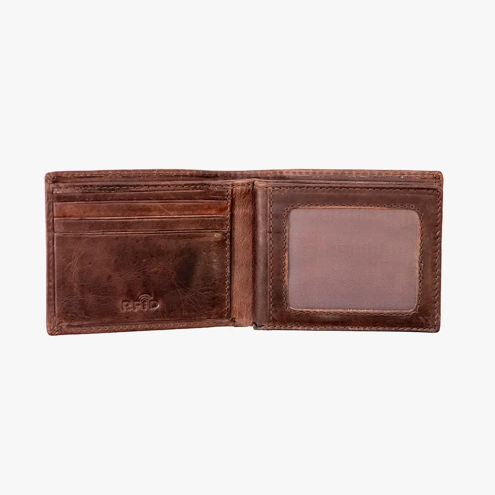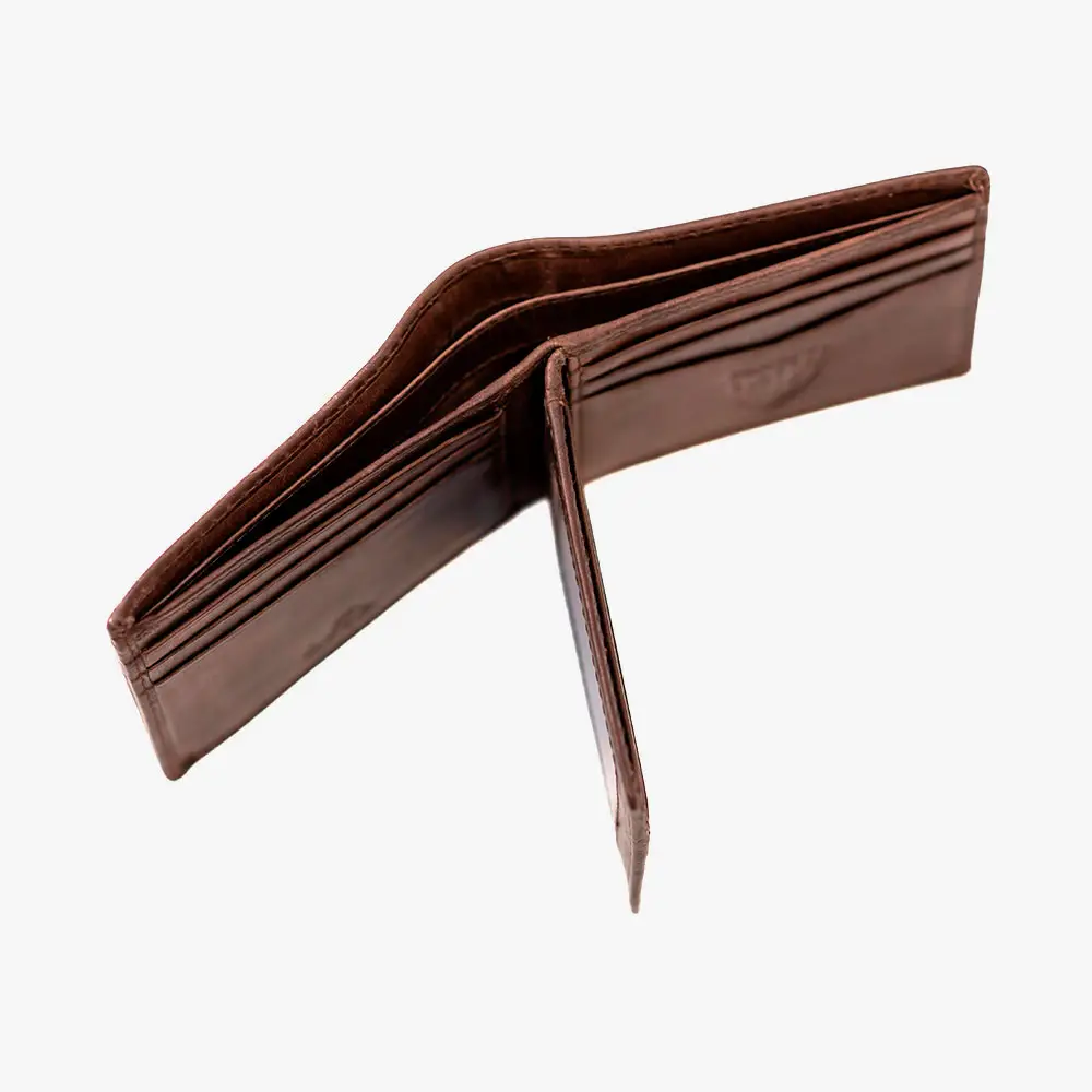 Esta elegante billetera de piel 100% vacuno del Athletic Club Bilbao combina estilo clásico con funcionalidad práctica. Fabricada en cuero genuino de alta calidad en color marrón, presenta el emblemático diseño AC en relieve en la parte frontal, mostrando tu pasión por el club. Con unas dimensiones compactas de 11x8cm, esta billetera oficial incluye múltiples compartimentos para tarjetas, espacios para billetes y un práctico bolsillo con ventana transparente para identificación o fotografías.