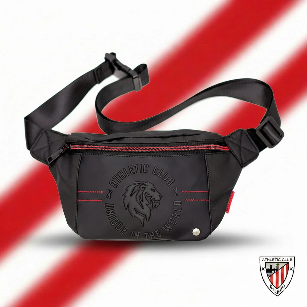 - DISEÑO OFICIAL: Riñonera deportiva oficial del Athletic Club con emblema del león y diseño ‘Unique in the World’ en relieve