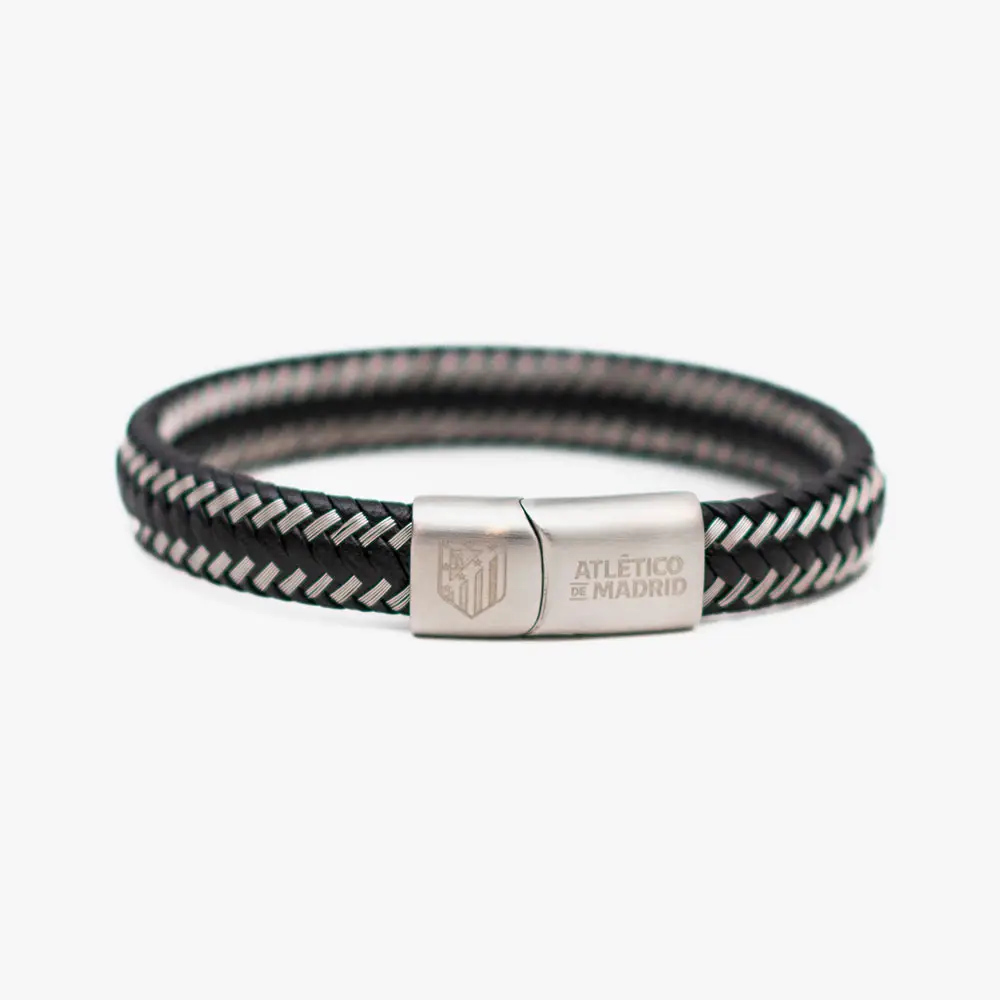 Luce con orgullo el escudo del Atlético de Madrid con esta elegante pulsera de cuero trenzado. Diseñada con un sofisticado acabado de filigranas metálicas, combina diferentes texturas que crean un patrón trenzado distintivo y elegante. El cierre, fabricado en acero inoxidable de alta calidad, presenta el emblema grabado del Atlético de Madrid, añadiendo un toque de distinción a esta pieza oficial del club. El cierre seguro garantiza una sujeción confiable durante todo el día. Esta pulsera no es solo un accesorio de moda, sino también una manera elegante de mostrar tu pasión por el Atlético de Madrid. Un producto oficial que representa la tradición y el estilo del club.