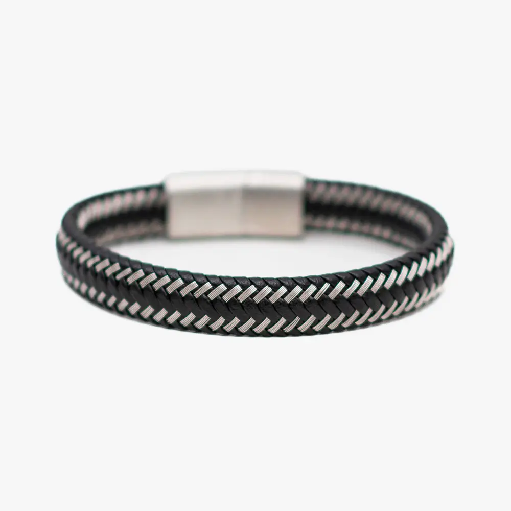 - DISEÑO ELEGANTE: Pulsera de cuero trenzado en con filigranas metálicas para un estilo sofisticado y deportivo