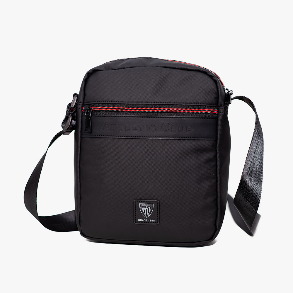 Esta bandolera deportiva combina estilo y funcionalidad con su construcción en negro mate y detalles en rojo que realzan su diseño. Fabricada con materiales de alta calidad agradables al tacto, cuenta con un espacioso compartimento principal y cremalleras resistentes con ribetes rojos que añaden un toque de distinción. La correa ajustable permite un transporte cómodo. El logotipo del Athletic Club en relieve aportan estilo y originalidad a esta pieza. Perfecta para los aficionados que buscan llevar sus pertenencias con orgullo y estilo, esta bandolera es ideal para el uso diario, eventos deportivos o cualquier ocasión casual.
